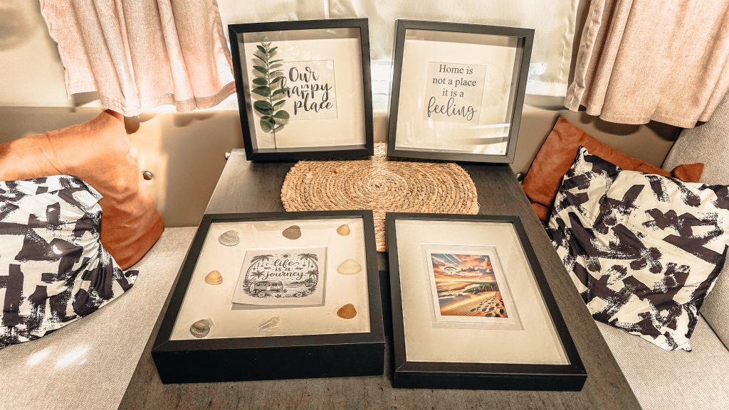 Gerade weil nichts fest montiert ist, bleibt man flexibel. Ein Motiv gefällt nicht mehr? Einfach austauschen. Neue Lieblingsstücke gefunden? Direkt integrieren. Genau diese Freiheit macht es für uns zur perfekten Lösung für Deko im Camper.