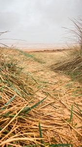 Der Lakolk Strand besticht durch riesige Dünen und den bereits beschriebenen feinen Sand. Nach unserer Begegnung mit dem Heuler und einem ausgiebigen Strandspaziergang waren wir nicht nur glückselig und vom Wind ordentlich durchgepustet sondern auch auf der Suche nach einem Geschäft, das typisch dänische Lebensmittel anbietet. Und wir wurden fündig: unweit vom Strand entfernt befindet sich der „Rømø Supermarked“, ein recht kleiner Laden mit einer ausgezeichneten Konditoreitheke und herzlichen Mitarbeitern, die sogar deutsch sprachen. Wer keine dänische Kronen dabei hat kann hier übrigens auch problemlos mit Kreditkarte zahlen. Wir entschieden uns für einen „Frogie“, ein Bisquitgebäck mit fruchtiger Füllung, grünem Fondant und Wackelaugen, das ein bisschen an Kermit den Frosch erinnerte. Außerdem wanderten noch typisch dänische Zitronentörtchen mit uns zum Camper. Wer nicht so gerne süße Speisen mag findet hier auch eine große Auswahl an anderen regionalen Dingen wie Fisch, Fleisch und auch Getränken. Wer sich den Gang in einen typischen Souvenirladen sparen möchte kann hier auch kleine Andenken erwerben. Was uns jedoch hauptsächlich in Erinnerung bleiben wird sind die wirklich freundlichen Mitarbeiter hier, die uns jede Frage zur Region mit Geduld und Expertise beantwortet haben.