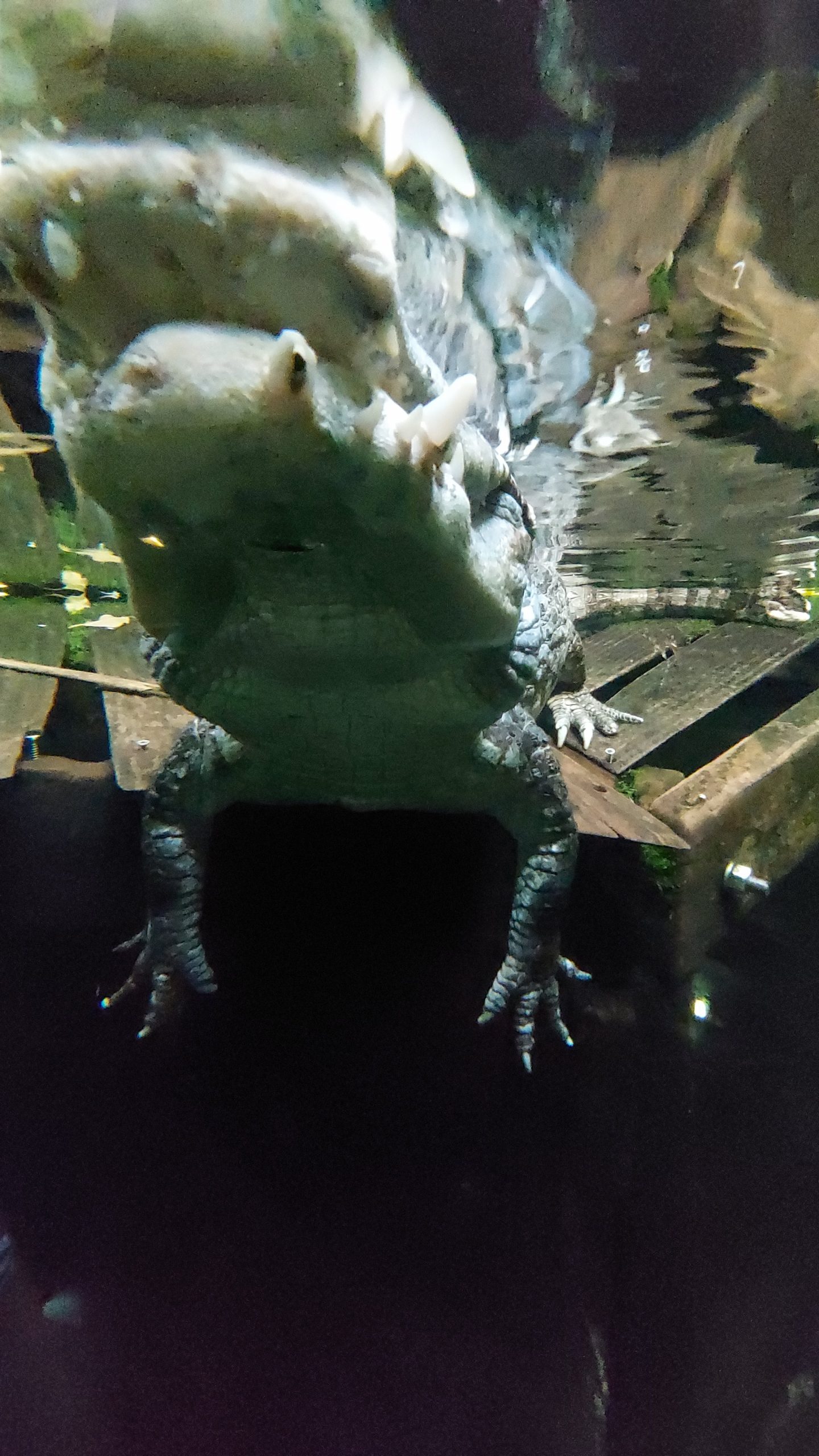 Allgemein wechseln wir an diesem Tag noch oft die Etagen und Ebenen, die Hallen und Räume – mal über Wege, mal über Rolltreppen oder Aufzüge. Gefühlt geht es in den drei Haupthallen ziemlich oft rauf und runter und wir sehen nicht nur noch weitere Meeresbereiche sondern befinden uns mal draußen bei den Seehunden (da Nausicaá direkt am Strand liegt bekommt man hier tatsächlich auch mal eine frische Brise mit), mal in einer Sturmsimulation, mal auf einem Fischkutter (die gefangenen Fische werden über dreidimensionale Videoleinwände vorbei transportiert), mal im tropischen Regenwald bei Krokodilen und Schlangen und mal am Pinguin-Strand. Eine Halle ist dabei ganz der Umweltzerstörung und dem Klimaschutz gewidmet. Gesonderte Becken lassen es zu, Rochen und Katzenhaie anzufassen. Besonders Kinder tummelten sich hier.