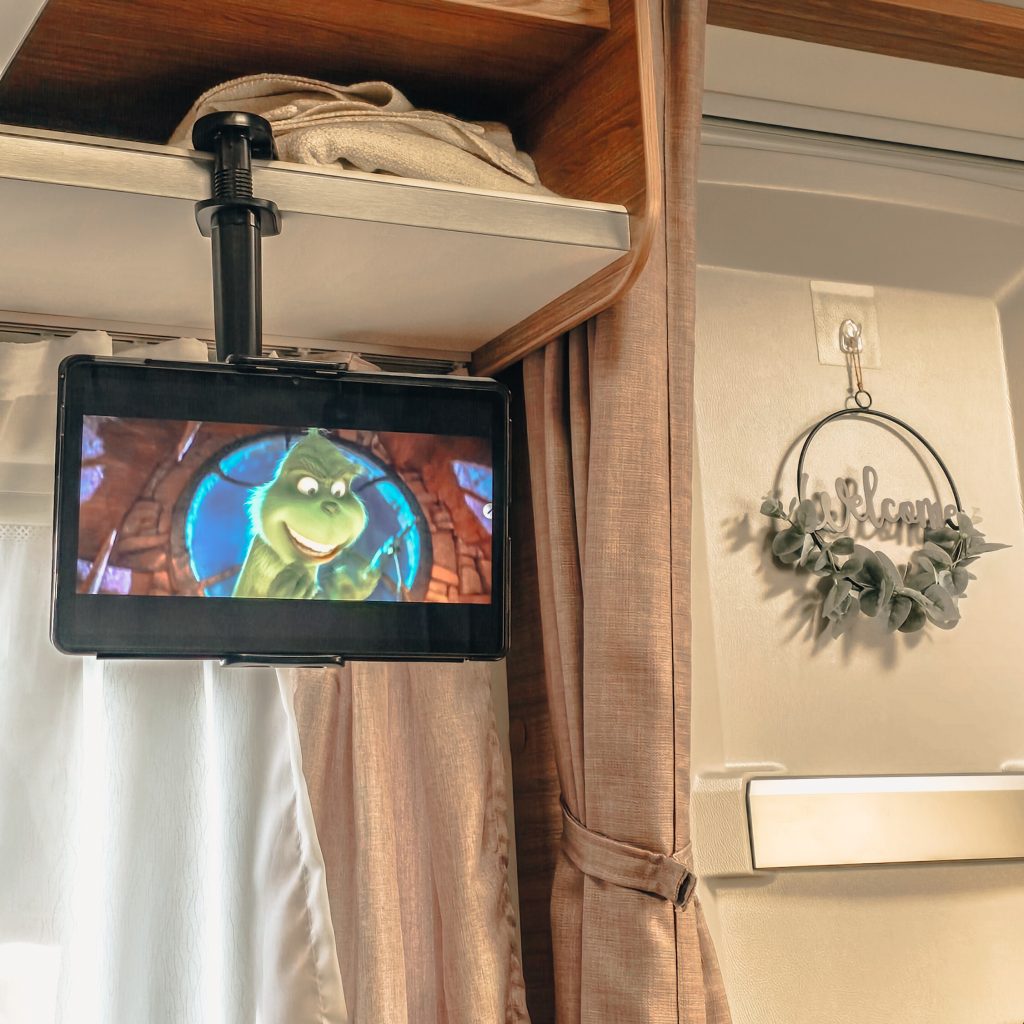 Natürlich wollten wir auch im Wohnwagen nicht auf eine gemütliche Weihnachtsstimmung verzichten. Also haben wir unseren kleinen Raum auf Rädern in ein Winterwunderland verwandelt. Eine Lichterkette schmückte die Fenster, auf dem Tisch in der Dinette stand ein selbstgemachter Adventskranz und auch auf einen Weihnachtsbaum haben wir nicht verzichtet. Allerdings war dieser auf eine Textilbahn gedruckt. Dennoch war er mit einer Lichterkette geschmückt und unter ihm stand der Jutesack mit den Weihnachtsgeschenken. Das Besondere daran? Die Deko war minimalistisch, aber gerade deshalb so charmant. Jeder Lichterfunke und jede kleine Kugel trug dazu bei, eine warme und festliche Atmosphäre zu schaffen.