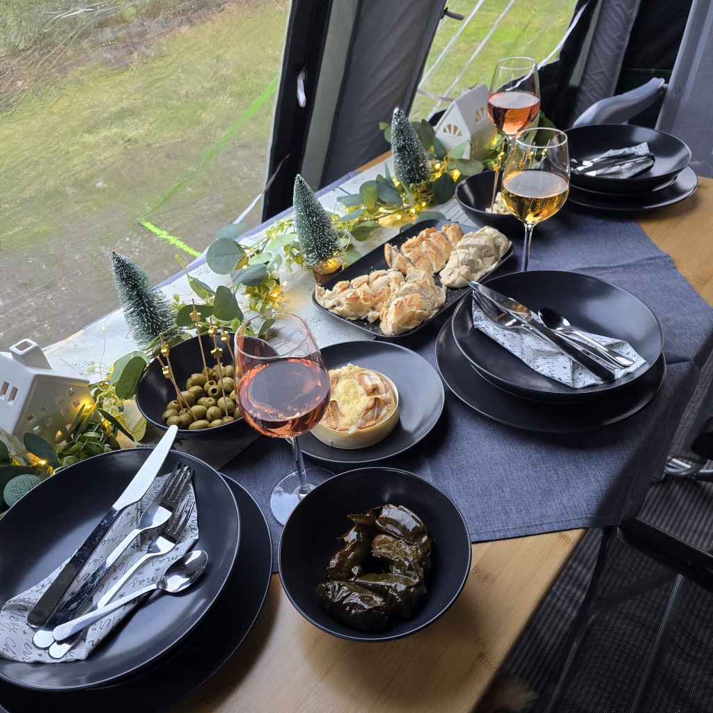 Das Kochen in einer Wohnwagen- oder Vorzeltküche ist im Vergleich zur Wohnungsküche schon eine kleine Herausforderung, aber für das Weihnachtsmenü haben wir uns etwas Besonderes überlegt. Statt eines opulenten Menüs mit Braten und zahlreichen Beilagen gab es für jeden von uns sein Lieblingsessen. Von der Vorspeise bis zum Dessert durfte jedes Familienmitglied einen Gang aussuchen. Heraus kam uns ein einfaches, aber superleckeres Essen. Es war ein Menü, das uns glücklich machte, und wir haben uns bewusst auf wenige, dafür aber hochwertige Zutaten konzentriert. Als Dessert wurde sich Eis gewünscht. Der große Vorteil: es musste wenig vorbereitet werden. Eigentlich mussten wir es nur auspacken, auf den Teller legen und mit etwas Obst und Vanillesauce verzieren. In ähnlicher Weise sind wir auch bei den anderen Gängen vorgegangen: wenig aufwendige Speisen, die aber nicht weniger lecker waren. Beispiel Vorspeise: wir haben verschiedene Antipasti angerichtet, dazu einen Ofenkäse (ähnlich einem Käsefondue), gefüllte Champignons aus dem Omnia und frisches Brot vom Bäcker. Da wir im Vorzelt gegessen haben war es schon ein bisschen ungewöhnlich, während des Weihnachtsessens eine Jacke zu tragen. Aber die Stimmung war festlich und nicht weniger stimmungsvoll als ein Weihnachtsessen zu Hause gewesen wäre. Die Rezepte zu den gefüllten Champignons, dem weihnachtlichen Feldsalat mit Walnüssen und eine weihnachtliche Frühstücksidee aus dem Omnia haben wir euch bei unseren Campingrezepten verlinkt:
